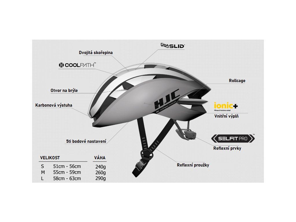 Der IBEX 3 ist der Inbegriff neuester HJC-Technologie und bietet Radfahrern höchste Qualität, Sicherheit und Wettbewerbsvorteile. Als erster Helm seiner Art verfügt er über die revolutionäre SELFIT PRO-Technologie, die ein automatisches Anpassungssystem mit der Möglichkeit der Feinjustierung kombiniert. Zusätzlich minimiert die innovative SLID-Technologie Rotationskräfte und sorgt für maximale Sicherheit. Der IBEX 3 verkörpert die Essenz der HJC COOLPATH-Technologie, die durch ein neues Innenfutter für optimale Kühlung des Kopfes während der Fahrt sorgt. Dank geringerem Gewicht und verbesserter Belüftung bietet der IBEX 3 hervorragende Performance. HELMMERKMALE: SELFIT PRO – ein automatisches, selbstanpassendes System, das eine revolutionäre Technologie im Bereich der Fahrradhelme darstellt. Einmal an den Kopf angepasst, ist keine weitere Justierung nötig, selbst bei Kopfbewegungen während der Fahrt. Das SELFIT-System passt den Abstand automatisch an und gewährleistet so einen gleichbleibenden Sitz und optimalen Tragekomfort. Fünf Druckknopfpositionen garantieren eine optimale Passform für alle Kopfformen und -größen. Das Mikrorad ermöglicht eine noch bessere Anpassung und Größenregulierung, sogar während der Fahrt. Der Fahrer kann die Passform präzise einstellen, sodass der Helm bei jeder Fahrt perfekt sitzt. COOLPATH – eine neue Technologie, die die Innenpolsterung ersetzt und für eine optimale Luftzirkulation um den Kopf sorgt, erhöht den Fahrkomfort. Der Luftstrom und das geringe Gewicht des Helms verbessern die Passform und bieten ein exzellentes Fahrgefühl. Eine bestimmte Luftmenge strömt durch die vordere Lufteinlassöffnung, zirkuliert im Helm und tritt schließlich durch die Auslassöffnung aus. Der erhöhte Luftstrom im Inneren kühlt den Kopf und leitet Wärme ab. SLID – HJC hat ein Sicherheitsfeature mit speziellem GEL-Material entwickelt. Das SLID-System im Helm reduziert die auf das Gehirn einwirkende Energie durch eine Rotationsfunktion. Das fortschrittliche GEL-Material in der SLID-Einlegesohle ist fließend. Dadurch werden die auf das Gehirn einwirkenden Kräfte und Energien minimiert, indem der Aufprall verteilt wird.