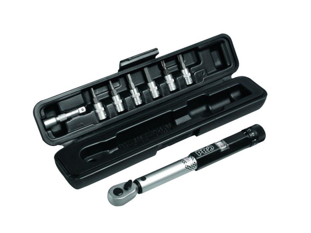 Professioneller Drehmomentschlüssel mit Aufsätzen in einem kompakten und langlebigen Gehäuse. Verstellbares Drehmoment von 3 bis 15 Nm. Für den Einsatz an Lenker, Vorbauten, Sattelstützen...