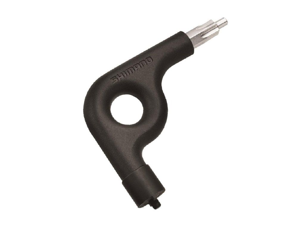 Der T40-Sternenschlüssel mit Führungsstift ist für das Anbringen und Entfernen von Wandlerschrauben konzipiert. Die gegenüberliegende Seite des Schraubenschlüssels hält die Befestigungsmutter beim Einbau des Kettenblatts sicher mit der Nut fest. Ergonomisches Design. Es wird empfohlen, sie mit TL-FC23 zu verwenden.