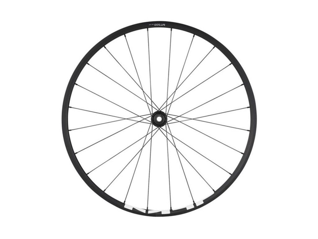 MT500 Vorderrad mit E-Thru-Durchachse (15 mm). Eine breitere 24C-Felge sorgt für mehr Steifigkeit und besseren Grip auf den Trails. Halter für die Center-Lock-Scheibe. Nabenbreite: O.L.D. 110mm (Boost).