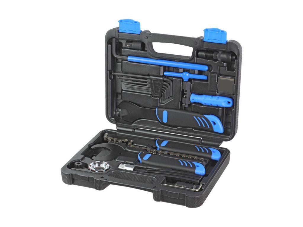 Das HOME-Set ist ein umfassendes 22-teiliges Werkzeugset, das nicht nur den Bedürfnissen von Anfängern, sondern auch erfahrenen Radfahrern entspricht. Er enthält grundlegende Werkzeuge wie einen Satz von 6-Kantenschlüsseln, Halterungen, Kettenniet, Zentrierenschlüssel, Pedalschlüssel, Kassettenzieher, Kurbelzug, Tretlagerzieher, Klebeset und viele weitere nützliche Werkzeuge für die DIY-Fahrradreparatur. Dieses Set besteht aus hochwertigen Materialien und präziser Verarbeitung für Haltbarkeit und einfache Handhabung. Das Werkzeug ist ordentlich in einem kompakten und stabilen Gehäuse organisiert, was es auch unterwegs für Reparatur und Wartung geeignet macht.