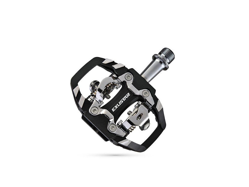 Die Exustar PM228 sind hervorragende Trail-Pedale, die deutlich besseren Halt bieten als klassische SPD-Pedale. Robustes, CNC-gefrästes Gehäuse mit Cr-Mo-Achse und Doppellagern. CNC-gefrästes Aluminiumgehäuse, Cr-Mo-Achse und Slimline-Doppellager. EPS-M-Pedalsystem (kompatibel mit Shimano MTB-System). Wärmebehandelte Achse, CNC-gefräste Cr-Mo-Lager, LSL-Buchse und gekapselte, beidseitig einstellbare Ein-/Ausklickkraft. Gehäuse: E-C05F. Abmessungen: 86 x 90 mm.