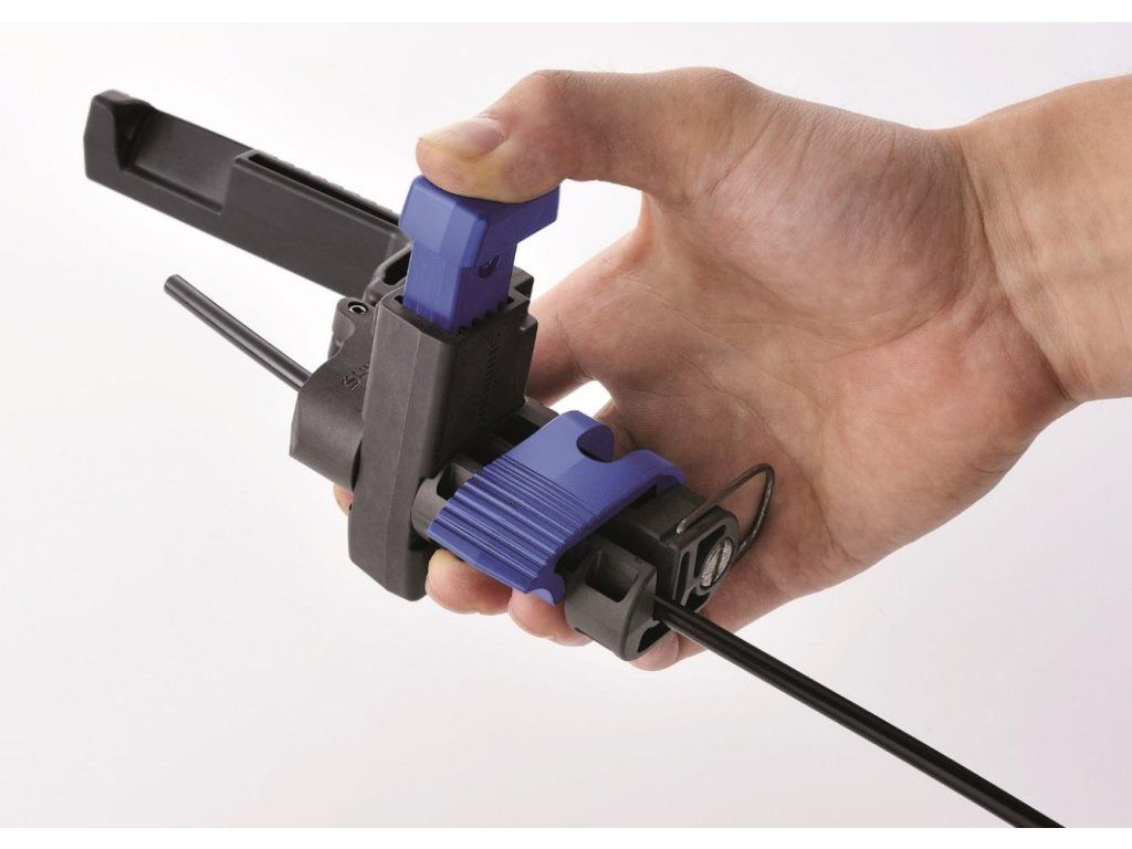 Er ist so konzipiert, dass er den Hydraulikschlauch kürzt und den Verbindungseinsatz presst.