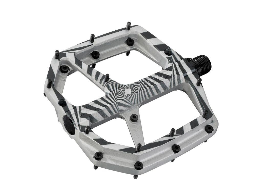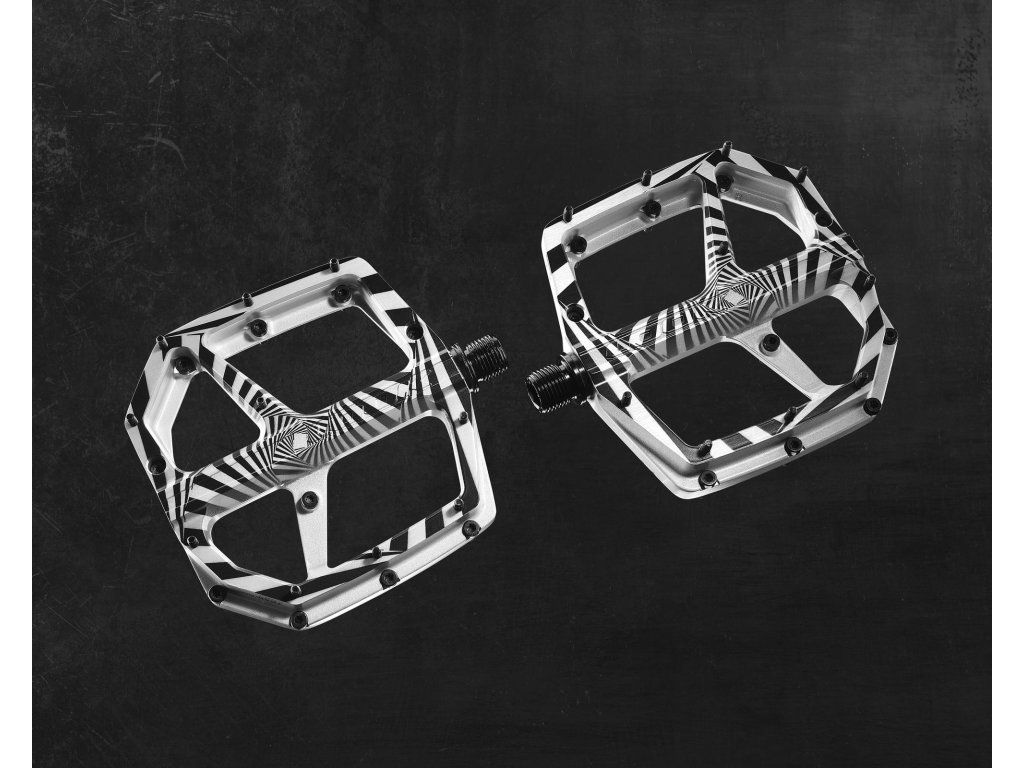 „Das Design ist von einigen meiner Lieblingsfilme inspiriert und spiegelt meine Persönlichkeit wider.“ Die Pedale der Thomas Genon Signature Series vereinen Kunst und Technik auf einzigartige Weise – und sehen dabei fantastisch aus. Inspiriert vom filmischen Genie von Hitchcock und Kubrick, bestechen diese Pedale durch ein psychedelisches Design, das die Kurven und Windungen der anspruchsvollsten Freeride-Trails der Welt widerspiegelt. Thomas erklärt: „Das Trail Roc+ ist ein richtig großes Pedal in einem kompakten Design, nah an den Kurbeln und mit viel Spielraum.“ Mit einer breiten, konkaven Plattform aus geschmiedetem Aluminium, 10 verstellbaren Pins und Premium-Lagern für unübertroffene Stabilität und Kontrolle bieten diese Pedale optimalen Halt und machen dich jederzeit startklar. Egal, ob du durch Bikeparks cruisest oder anspruchsvolle Trails fährst: Lass dich von Thomas inspirieren und fahre wie die Legende, die du bist. Wer ist Thomas Genon? „Sei du selbst, hab Spaß an dem, was du tust, und sei die beste Version von dir selbst.“ So nimmt Thomas Genon Jahr für Jahr an der legendären Rampage teil. Der belgische Fahrer, auch bekannt als „Tommy G“, ist für sein außergewöhnliches Talent in der Freeride- und Slopestyle-Mountainbike-Szene berühmt. Mit seinem Sieg beim Joyride 2012 im Rahmen von Crankworx Whistler gelang ihm der internationale Durchbruch. Er ist bekannt für seinen makellosen Stil, seine präzisen Tricks und seine Fähigkeit, auch unter Druck Höchstleistungen zu erbringen. Thomas ist eine wahre MTB-Legende, ein bekanntes Gesicht auf der internationalen Bühne, der den Sport mit kreativen Lines und innovativen Tricks, die Generationen von Fahrern inspirieren, immer wieder vorantreibt. Seit 2022 gehört er zur LOOK-Familie und spielte eine Schlüsselrolle bei der Entwicklung der Trail Roc+ Pedale. Er brachte seine Expertise und Leidenschaft ein, um die Performance des Produkts zu verbessern und es seit 2021 bei jeder Rampage erfolgreich einzusetzen. Langlebige Pedale mit hoher Stabilität: „Wenn man ständig zwischen verschiedenen Bikes und Disziplinen wechselt, muss man sich auf den Pedalen wohlfühlen, um selbstbewusst fahren zu können“, erklärt Thomas. „Von Freeride bis Slopestyle ist es extrem wichtig, superschnell zu sein.“ Die Trail Roc+ Pedale sind aus geschmiedetem Aluminium gefertigt und bieten so unübertroffene Langlebigkeit. Ihre breite, konkave Plattform sorgt für außergewöhnlichen Grip und Stabilität. Jede Seite verfügt über 10 austauschbare Pins, die strategisch platziert sind, um Ihren Fuß auch unter extremsten Bedingungen sicher zu fixieren. Die doppelt abgedichtete Achsenkonstruktion garantiert das beste Verhältnis von Haltbarkeit und Leistung auf dem Markt. Hergestellt und sorgfältig montiert in unserer eigenen Werkstatt in Nevers, Frankreich, stehen diese Pedale für höchste Qualität und spiegeln die Leidenschaft und Liebe zum Detail unserer Markenbotschafter wider. Handgefertigt in Frankreich. Signature Series LOOK Trail Roc Plus. Dank eines innovativen Herstellungsverfahrens wurden die einzigartigen und unkonventionellen Designs von Kriss und Thomas originalgetreu auf den Trail Roc+ Pedalen umgesetzt und verleihen ihnen so einen neuen, unverwechselbaren und exklusiven Charakter in einem Markt, der von einfarbigen Designs dominiert wird. Die LOOK Signature Series würdigt legendäre Athleten wie Peter Sagan, Alberto Contador und Christoph Sauser, die mit ihren Leistungen und Persönlichkeiten die Radsportgeschichte für immer geprägt haben. Heute widmen wir diese Neuauflage mit Stolz zwei herausragenden Fahrern, die in ihren jeweiligen Disziplinen glänzen: Kriss Kyle und Thomas Genon. Achsmaterial: Chromoly+; Pedalkörpermaterial: Geschmiedetes Aluminium; Q-Faktor: 56 mm; Plattformfläche: 104 x 101 mm; Gewicht pro Pedal: 197 g; Gewicht pro Paar: 395 g