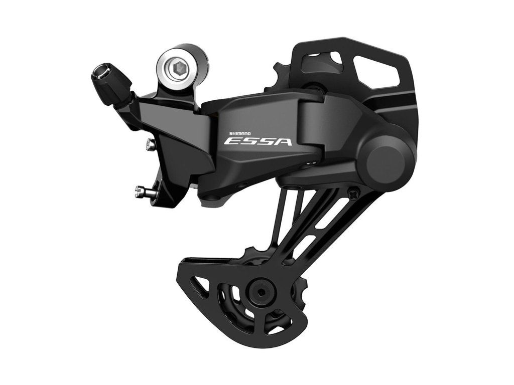 Der ESSA-Schalter ist für 1x8-Gangschaltsysteme ausgelegt. Kompatibel mit einer 11-45-Zahn-Kassette. Niedrigprofiliges Shimano Shadow RD-Design. Schaltwerkskapazität: 34 Zähne.