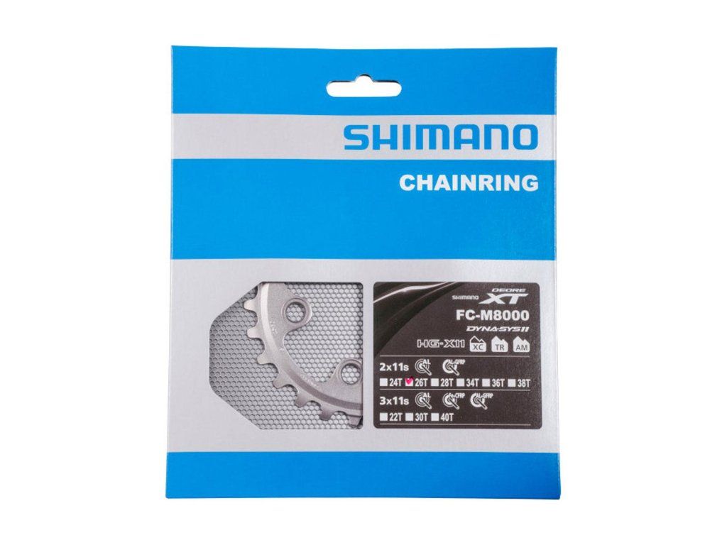 Kleinstes XT-Kettenblatt für Kurbeln FCM8000, 11 Rad, 26 Zähne. Kein Zähnetippen. Für ein Doppelkettenblatt.