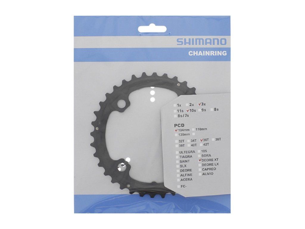 DEORE XT 36-zahniges mittleres Kettenblatt für FC-T8000, FC-M780, FC-M781 Kurbeln. Mit speziell geformten Zähnen und HG-Ketten sorgt das für ein ausgezeichnetes Maß an Schaltmöglichkeiten.