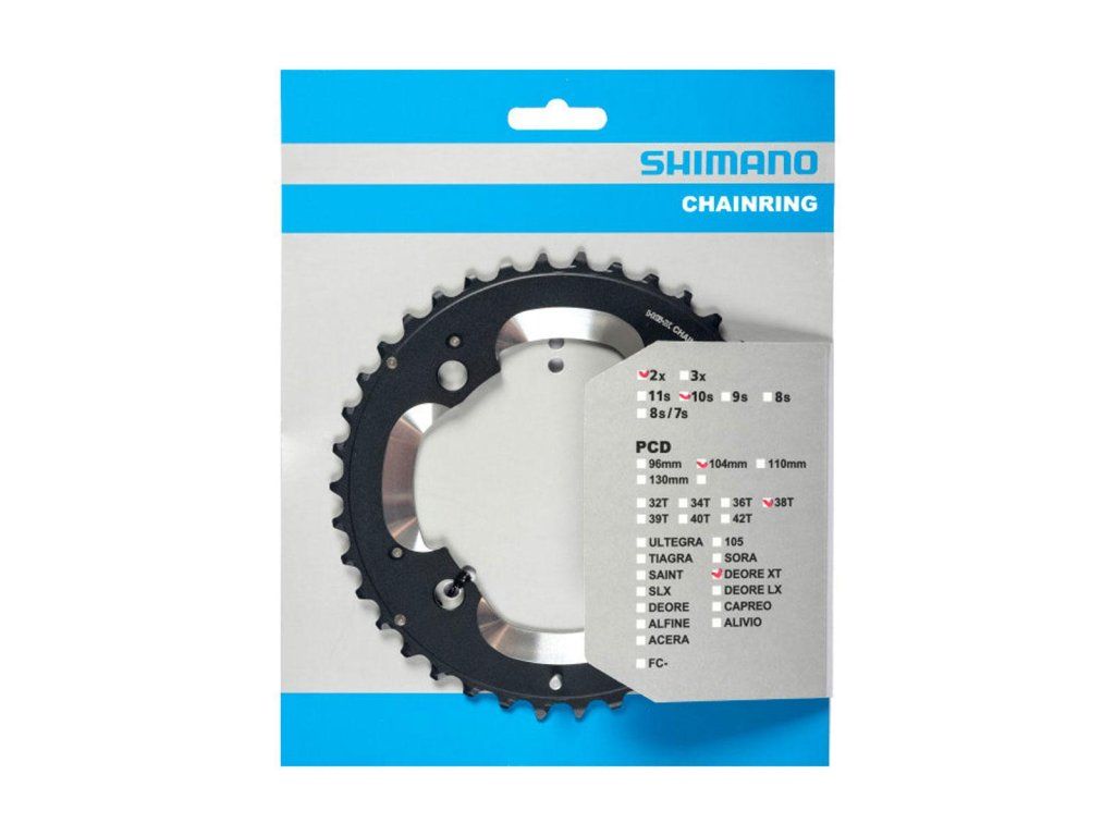 Großes XT-Kettenblatt, 38 Zähne für FC-M785-Kurbeln. Mit speziell geformten Zähnen und HG-Ketten sorgt das für ein ausgezeichnetes Maß an Schaltmöglichkeiten. Für ein Doppelkettenblatt.