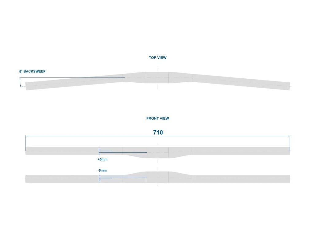 MTB-XC-Sportlenker, Breite 710 mm, 5° Krümmung, matte Oberfläche. Gewicht 276 g.