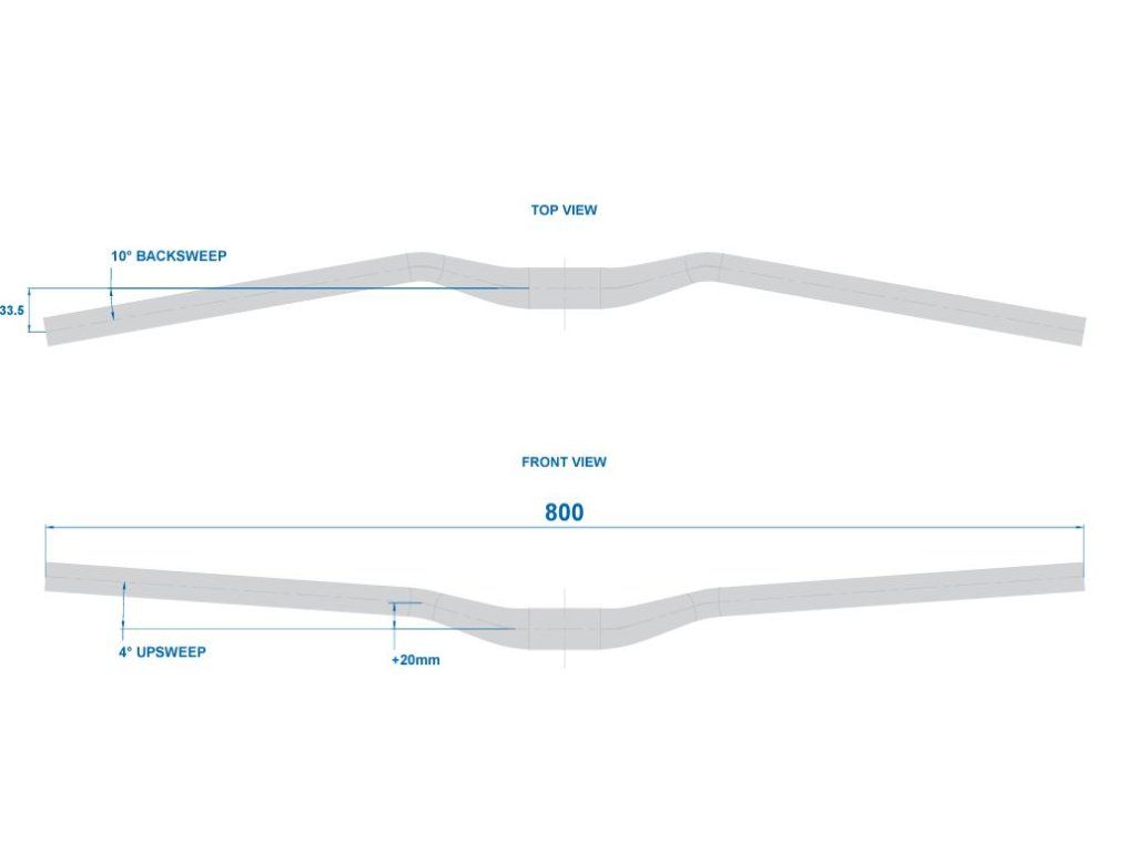 Der Ritchey MTB-Lenker ist für All-Mountain- und Trail-Einsätze konzipiert und aus der leichten Aluminiumlegierung 6061/T6 gefertigt. Er hat eine Breite von 800 mm, einen Hub von 20 mm, eine Krümmung von 10 Grad nach hinten und eine mattschwarze Oberfläche. Gewicht: 385 g.