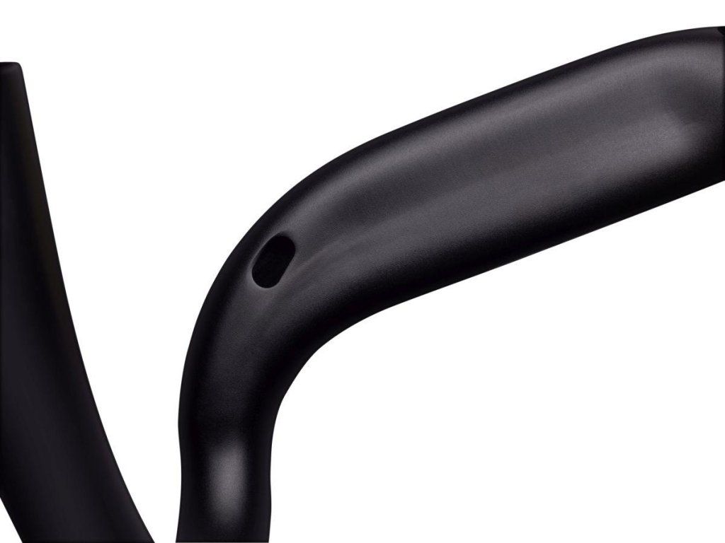 Straßen-aerodynamisch geformte Lenker mit zusätzlichem Grip oben.