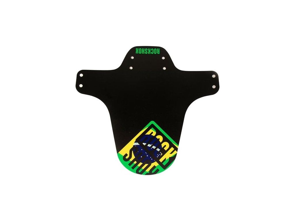 RockShox MTB-Schutzblechshorts, schwarz, mit Reißverschlussband und brasilianischem Flaggenmuster
