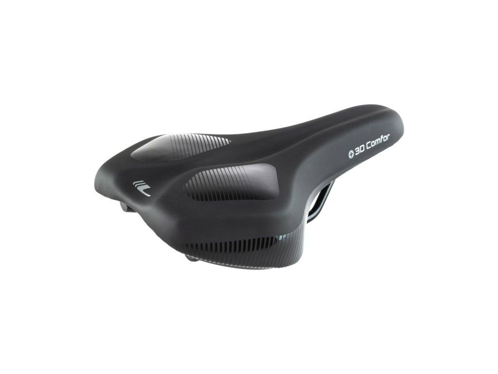 Der 3D-COMFOR-Sattel ist in erster Linie für komfortables und schnelles Fahren auf jedem Fahrrad konzipiert. Ziel ist es, den Stoßdruck zu reduzieren und Stöße während der Fahrt abzufedern. In den Bereichen mit dem höchsten Druck auf die Sitzknochen wird eine Schicht Memory-Schaum aufgebracht, die den Druck über eine größere Fläche verteilt und sich an die Körperform anpasst. Eine Schaumschicht mit höherer Dichte sorgt für Vibrationsdämpfung und erhöht die Stabilität. Das abgesenkte Mittelband verringert den Druck im Bereich zwischen den Sitzknochen. Das robuste und angenehme Oberteil mit rutschfester Behandlung verhindert ein Ausrutschen auf dem Sattel während der Fahrt. Stabile Stahlschienen verlängern die Lebensdauer des Sattels.