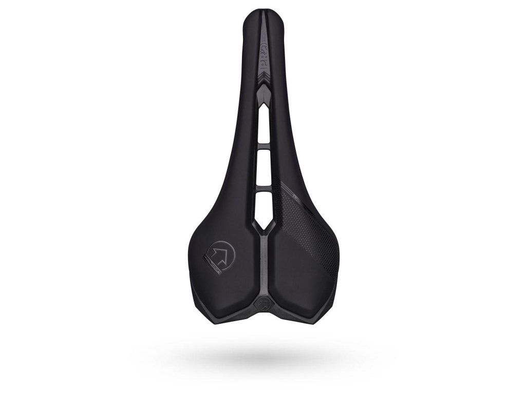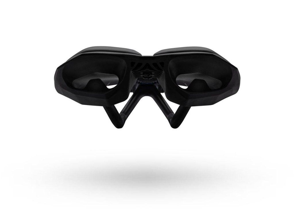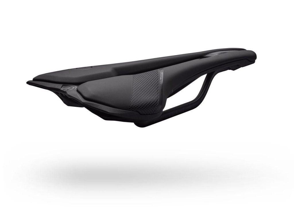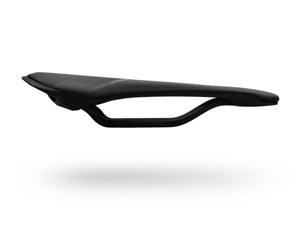 Universeller Sattel mit Carbon-Schienen und flacher Form, ideal für flexible Reiter, die eine stabile Position auf dem Sattel halten.