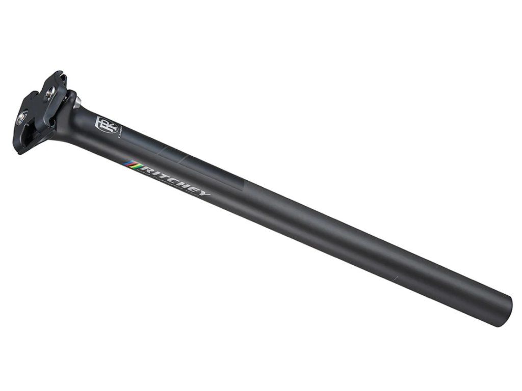 Die neueste Carbon-Sattelstütze mit Alu-Lock. Die Carbonfaser-Konstruktion erhöht die Stoßdämpfung und damit den Fahrkomfort, ohne die Torsionssteifigkeit zu beeinträchtigen. Die überarbeitete Zero-Sattelstütze bietet dank der vorderen und hinteren Schraubschienen einen rutschfesten Sattelgriff und hohe Einstellmöglichkeiten. Durch die doppelte Befestigung bleibt der Sattel stabil, egal ob auf der Straße oder beim Umsetzen – er bleibt immer an Ort und Stelle. Material: Carbonfaser. Durchmesser: 27,2, 30,9, 31,6 mm. Gesamtlänge: 400 mm (inkl. 100 mm Mindesteinschub). Offset: Null. Sattelklemmung: 2-Schrauben-Befestigung (vorne/hinten). Anzugsmoment Sattelklemmung: max. 7 Nm. Anzugsmoment Sattelklemme: max. 6 Nm / max. 7 Nm für Ritchey-Stahlrahmen. Gewicht: 200 g (27,2 x 400 mm). Farbe: mattes UD-Carbon-Finish.