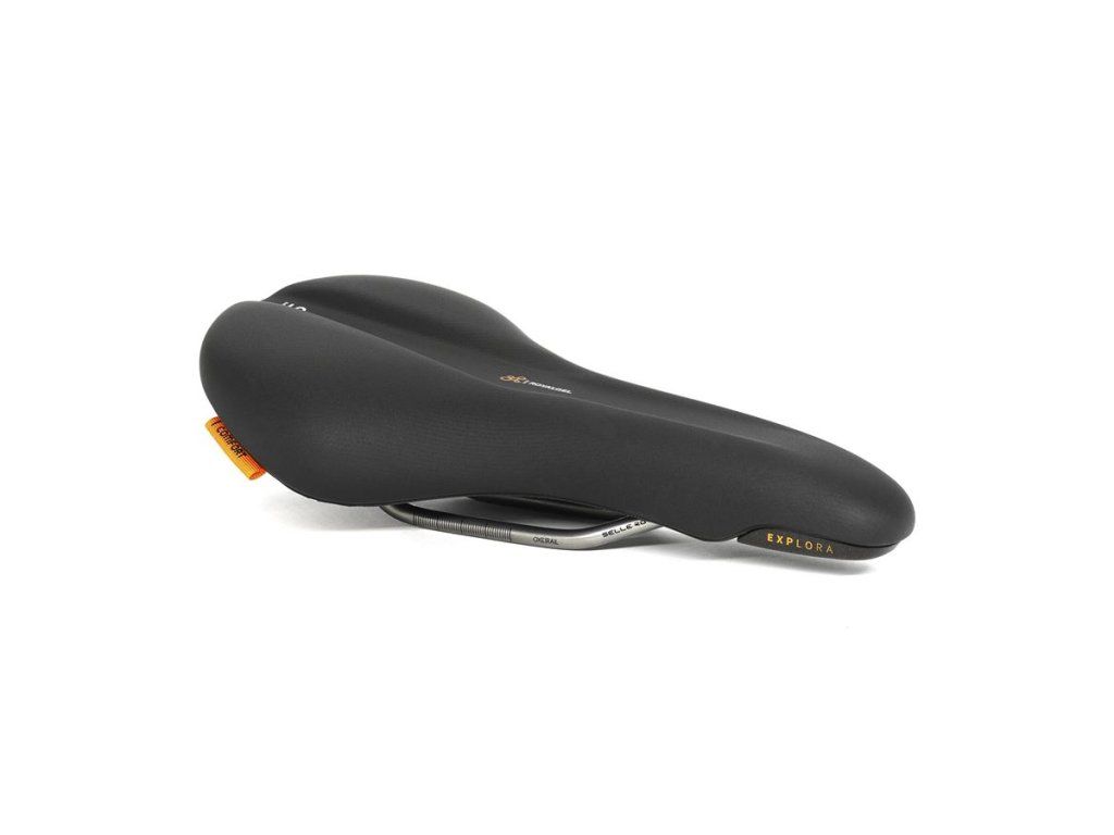 Der Explora-Sattel mit seinem ergonomischen Mittelkanal bietet Komfort auf jedem Untergrund. Ob auf der Straße oder im leichten Gelände – der Komfort ist garantiert. Die Royal Gel-Polsterung und der integrierte Stoßdämpfer im hinteren Bereich des Sattels (ähnlich einem Elastomer) sorgen für unbeschwerten Fahrspaß. Das leicht geschwungene Profil ermöglicht ein schnelles Finden der optimalen Sitzposition und bietet zudem Unterstützung bei steilen Anstiegen. Sportliche Sättel eignen sich für Fahrer, die ein höheres Tempo gewohnt sind und den Rücken in einem flacheren Winkel (ca. 45°) halten. Die Sitzposition ist ein entscheidender Faktor bei der Wahl des optimalen Sattels. Je nach Fahrstil variiert die Auflagefläche der Sitzknochen auf dem Sattel, was wiederum den Komfort beeinflusst. Selle Royal Sättel sind ergonomisch geformt und passen sich jeder Sitzknochenbreite an. Sie erfüllen die anatomischen Bedürfnisse von Männern und Frauen und garantieren Druckentlastung in den empfindlichsten Bereichen. Wählen Sie die passende Sitzposition aus 45° (Athletisch), 60° (Moderat) oder 90° (Entspannt) für eine schmerzfreie Fahrt. Royal Gel: Dank seiner außergewöhnlichen Konstruktion bietet Royal Gel höchsten Komfort im Vergleich zu anderen Polstermaterialien. Diese Technologie verteilt Stöße und den Druck des Fahrers optimal über die größtmögliche Sattelfläche und sorgt so für maximalen Komfort auch auf langen Touren. Royal Vacuum: Genießen Sie Ihre Fahrt mit einem wasserdichten Sattel. Diese patentierte Technologie von Selle Royal ermöglicht einen 100%ig dichten und hochgradig wasserdichten Sattel, selbst bei starkem Regen. Ergonomischer Kanal: Dieser Kanal ist ergonomisch an die Körperform angepasst und entlastet das Weichgewebe bei gleichzeitig optimaler Unterstützung der Sitzknochen. Schluss mit Schmerzen, einfach losfahren! Integriertes Clip-System: Ein integrierter Clip an der Sattelrückseite ermöglicht die Befestigung einer Satteltasche oder anderen Zubehörs. Länge: 273 mm, Breite: 152 mm, Gewicht: 379 g, ICS: Ja