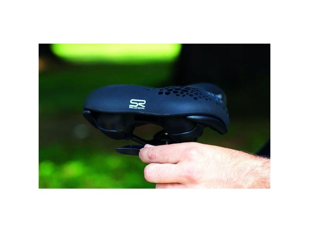 Ein Sattel, der sich Ihrem Körper anpasst – genießen Sie sofortigen Komfort mit dem Freeway Fit Sattel. Die Slow Fit Schaumstoffpolsterung passt sich Ihrer Körperform an und sorgt für eine gleichmäßige Druckverteilung. Damit ist er der ideale Begleiter für kurze Fahrten in der Stadt. Moderate Sättel sind für Fahrer mit einer entspannten Sitzposition (Rückenlehnenwinkel ca. 60°) konzipiert, die bequem sitzen und problemlos in die Pedale treten möchten. Die Sitzposition ist ein entscheidender Faktor bei der Wahl des optimalen Sattels. Je nach Fahrstil variiert die Position Ihrer Sitzknochen auf dem Sattel erheblich, was wiederum den Komfort beeinflusst. Selle Royal Sättel sind ergonomisch geformt und passen sich jeder Sitzknochenbreite an. Sie erfüllen die anatomischen Bedürfnisse von Männern und Frauen und garantieren Druckentlastung in den empfindlichsten Bereichen. Wählen Sie die passende Sitzposition aus 45° (Athletisch), 60° (Moderat) oder 90° (Entspannt) für eine schmerzfreie Fahrt. Slow Fit Schaumstoff: Ideal für kurze und entspannte Fahrten. Die Slow Fit Schaumstoffpolsterung ist eine exklusive Selle Royal Technologie, die sich Ihrer Körperform anpasst. Der Memory-Schaum mit langsamer Rückstellkraft sorgt für ein komfortables Fahrgefühl. Royal Vacuum: Genießen Sie Ihre Fahrt mit einem wasserdichten Sattel. Dank dieser patentierten Selle Royal Technologie ist der Sattel 100 % wasserdicht, selbst bei starkem Regen. Seitenschutz: Schluss mit eingerissenen Sattelkanten! Lehnen Sie Ihr Fahrrad einfach irgendwo an: Der Seitenschutz des Sattels erhöht seine Abrieb- und Reißfestigkeit. Integriertes Clip-System: Ein integrierter Clip an der Sattelrückseite ermöglicht die Befestigung einer Satteltasche oder anderen Zubehörs. Breite: 186 mm, Länge: 260 mm, Gewicht: 524 g, ICS: Ja
