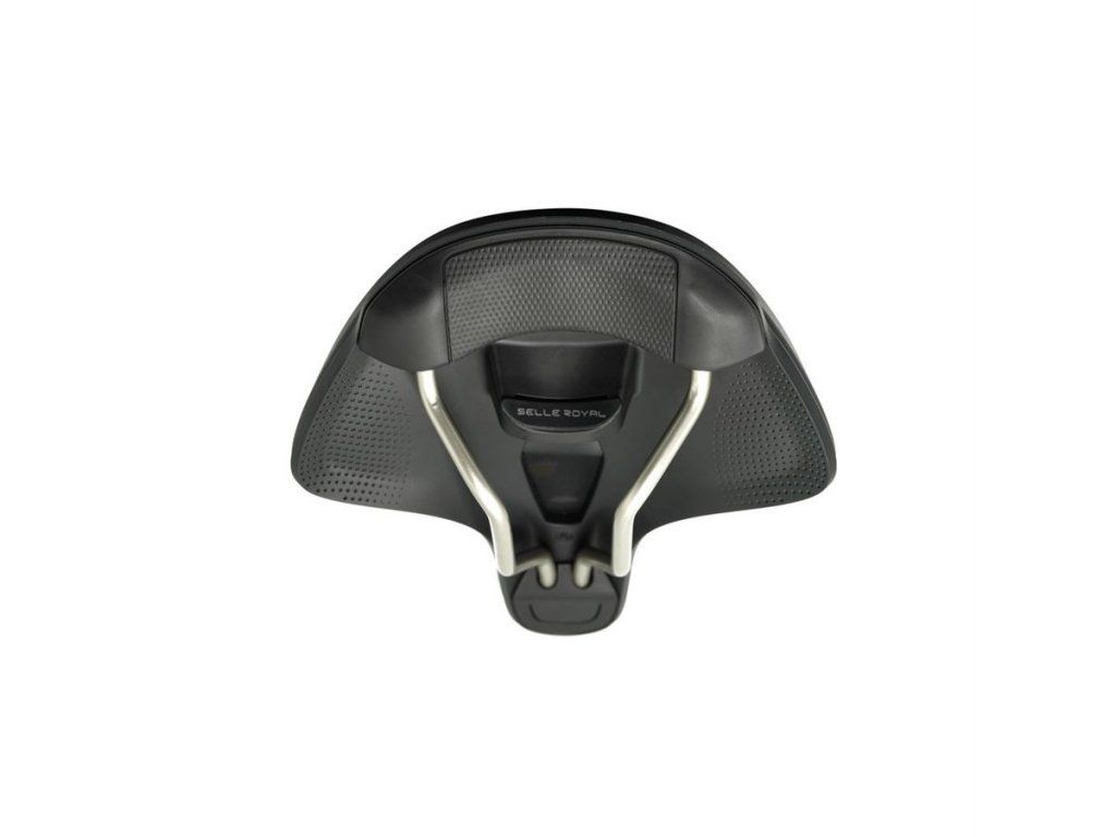Der On Open Sattel wurde speziell für E-Bikes entwickelt, um optimalen Komfort und bestes Handling zu gewährleisten: Seine flexiblen Seitenwände erleichtern das Treten, während die erhöhte Rückenlehne Ihnen hilft, sofort die richtige Sitzposition zu finden. Die Polsterung besteht aus unserem Royalgel, das Stöße 40 % besser absorbiert als herkömmliche Polster. Zusätzlich entlastet die zentrale Aussparung empfindliche Bereiche und verbessert die Belüftung. Die Relaxed-Variante ist ideal für alle, die eine aufrechte und entspannte Sitzposition bevorzugen (Rückenlehnenwinkel ca. 90°). Die Sitzposition ist ein entscheidender Faktor bei der Wahl des optimalen Sattels. Je nach Fahrstil variiert die Position Ihrer Sitzknochen auf dem Sattel erheblich, was wiederum den Komfort beeinflusst. Selle Royal Sättel sind ergonomisch geformt und passen sich jeder Sitzknochenbreite an. Sie erfüllen die anatomischen Bedürfnisse von Männern und Frauen und garantieren Druckentlastung in den empfindlichsten Bereichen. Wählen Sie die passende Sitzposition aus 45° (Athletic), 60° (Moderate) oder 90° (Relaxed) für eine schmerzfreie Fahrt. Royal Gel: Dank seiner außergewöhnlichen Konstruktion bietet Royal Gel höchsten Komfort im Vergleich zu anderen Polsterarten. Diese Technologie verteilt Stöße und den Druck des Fahrers optimal über eine maximale Sattelfläche und sorgt so auch auf langen Fahrten für maximalen Komfort. Royal Vacuum: Genießen Sie Ihre Fahrt mit einem wasserdichten Sattel. Diese patentierte Technologie von Selle Royal ermöglicht einen 100%ig dichten und hochgradig wasserdichten Sattel, selbst bei starkem Regen. Ergonomische Aussparung: Diese ergonomische Aussparung in der Mitte reduziert den Druck auf den Dammbereich und macht den Sattel ideal für empfindliche Fahrer. Schmerzfrei fahren! Integriertes Clip-System: Mit dem integrierten Clip an der Sattelrückseite können Sie eine Satteltasche oder anderes Zubehör befestigen. E-Fit Design: Das innovative, wellenförmige Design hilft Ihnen, sofort die optimale Position auf Ihrem E-Bike zu finden. Die erhöhte Sattelrückseite verhindert ein Zurückrutschen und sorgt für maximalen Komfort für Ihren Rücken, während die einzigartig flexiblen Seiten des Sattels für zusätzliche Stabilität sorgen und das Treten erleichtern. E-Grip: Der integrierte Softgriff erleichtert die Handhabung des Fahrrads. ABMESSUNGEN 255 x 220 mm GEWICHT 629 g