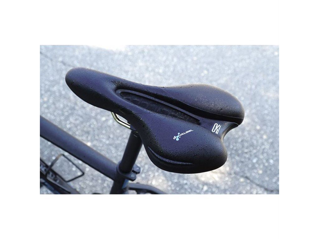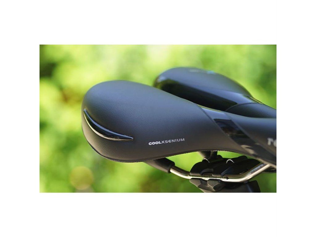 Respiro-Sättel verfügen über eine große Belüftungsöffnung. Das ergonomische Design beugt Druck auf Nerven, Blutgefäße und die Prostata vor. Das Ergebnis ist eine optimierte Durchblutung im Genitalbereich und verhindert Taubheitsgefühle. Für perfekten Komfort auf dem Weg zur Arbeit, aber auch auf Reisen abseits des Alltags, ist der Respiro-Sattel eine wahre Wohltat. Als Topmodell der Marke Selle Royal bietet der Respiro dank seiner einzigartigen, großen Belüftungsöffnung ein erfrischendes Fahrgefühl. Diese sorgt für optimale Belüftung und reduziert den Druck auf empfindliche Bereiche. Der innovative Sattelbezug reflektiert das Sonnenlicht und hält so die Satteloberfläche kühl, während die Royalgel-Polsterung optimalen Halt bietet und sich jeder Körperbewegung beim Fahren anpasst. Sportliche Sättel sind ideal für Fahrer, die ein höheres Tempo gewohnt sind und ihren Rücken in einem flachen Winkel (ca. 45°) halten. Die Sitzposition ist ein entscheidender Faktor bei der Wahl des optimalen Sattels. Je nach Fahrstil variiert die Position der Sitzknochen auf dem Sattel erheblich, was wiederum den Komfort beeinflusst. Selle Royal Sättel sind ergonomisch geformt und passen sich jeder Sitzknochenbreite an. Sie erfüllen die anatomischen Bedürfnisse von Männern und Frauen und garantieren Druckentlastung in den empfindlichsten Bereichen. Wählen Sie Ihre optimale Sitzposition: 45° (Athletisch), 60° (Moderat) oder 90° (Entspannt) für eine schmerzfreie Fahrt. Royal Gel: Dank seiner außergewöhnlichen Konstruktion bietet Royal Gel höchsten Komfort. Diese Technologie verteilt Stöße und den Druck des Fahrers optimal über die größtmögliche Fläche des Sattels und sorgt so für maximalen Komfort auch auf langen Touren. Belüftung: Lassen Sie sich Ihre Fahrt nicht von hohen Temperaturen verderben. Das Belüftungssystem leitet frische, kühlere Luft durch den Sattel in die ergonomische Aussparung in der Mitte – für ein angenehmes Fahrgefühl ohne unangenehmes Schwitzen! Royal Vacuum: Genießen Sie Ihre Fahrt mit einem wasserdichten Sattel. Diese patentierte Technologie von Selle Royal ermöglicht einen 100%ig dichten und hochgradig wasserdichten Sattel, selbst bei starkem Regen. Kühlende Oberfläche: Die spezielle Zusammensetzung der Satteloberfläche reflektiert Sonnenlicht und hält die Temperatur bis zu 25 °C niedriger als bei Standard-Sätteln – so können Sie Ihr Fahrrad bedenkenlos in der Sonne stehen lassen. Seitlicher Schutz: Schluss mit eingerissenen Sattelkanten! Lehnen Sie Ihr Fahrrad einfach überall an: Der seitliche Schutz des Sattels erhöht seine Abrieb- und Reißfestigkeit. Integriertes Clip-System: Mit dem integrierten Clip an der Sattelrückseite können Sie eine Satteltasche oder anderes Zubehör befestigen. Breite: 163 mm, Länge: 277 mm, Gewicht: 429 g, ICS: Ja