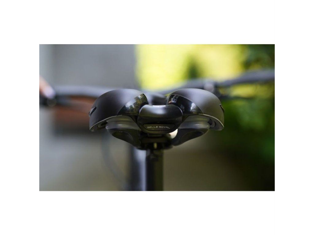 Respiro-Sättel verfügen über eine große Belüftungsöffnung. Das ergonomische Design beugt Druck auf Nerven, Blutgefäße und die Prostata vor. Dies optimiert die Durchblutung im Genitalbereich und verhindert Taubheitsgefühle. Für perfekten Komfort auf dem Weg zur Arbeit und auch auf Ausflügen abseits des Alltags ist der Respiro-Sattel eine wahre Wohltat. Als Topmodell der Marke Selle Royal bietet der Respiro-Sattel dank seiner einzigartigen, großen Belüftungsöffnung ein erfrischendes Fahrgefühl. Diese sorgt für optimale Belüftung und reduziert den Druck auf empfindliche Bereiche. Die innovative Oberfläche des Sattels reflektiert das Sonnenlicht und hält so die Temperatur niedrig, während die Royalgel-Polsterung optimalen Halt bietet und sich jeder Körperbewegung beim Fahren anpasst. Die moderaten Sättel sind für Fahrer mit einer entspannten Sitzposition (Rückenlehnenwinkel ca. 60°) konzipiert, die bequem sitzen und problemlos in die Pedale treten möchten. Die Sitzposition ist ein entscheidender Faktor bei der Wahl des optimalen Sattels. Je nach Fahrstil variiert die Position der Sitzknochen auf dem Sattel erheblich, was wiederum den Komfort beeinflusst. Selle Royal Sättel sind ergonomisch geformt und passen sich jeder Sitzknochenbreite an. Sie erfüllen die anatomischen Bedürfnisse von Männern und Frauen und sorgen für optimale Druckentlastung in den empfindlichsten Bereichen. Wählen Sie Ihre Sitzposition: 45° (Athletisch), 60° (Moderat) oder 90° (Entspannt) für eine schmerzfreie Fahrt. Royal Gel: Dank seiner außergewöhnlichen Konstruktion bietet Royal Gel höchsten Komfort. Diese Technologie verteilt den Aufprall und Druck des Fahrers optimal über die größtmögliche Fläche des Sattels und garantiert so auch auf langen Touren höchsten Komfort. Belüftung: Lassen Sie sich Ihre Fahrt nicht von hohen Temperaturen verderben. Die Belüftung führt frische, kühlere Luft durch den Sattel in die ergonomische Aussparung in der Mitte. So genießen Sie Ihre Fahrt ohne unangenehmes Schwitzen! Royal Vacuum: Erleben Sie einen wasserdichten Sattel. Diese patentierte Technologie von Selle Royal ermöglicht einen 100%ig dichten und hochgradig wasserdichten Sattel – selbst bei starkem Regen. Kühlende Oberfläche: Die spezielle Zusammensetzung der Satteloberfläche reflektiert Sonnenlicht und hält die Temperatur bis zu 25 °C niedriger als bei Standard-Sätteln – so können Sie Ihr Fahrrad bedenkenlos in der Sonne stehen lassen. Seitlicher Schutz: Schluss mit eingerissenen Sattelkanten! Lehnen Sie Ihr Fahrrad einfach überall an: Der seitliche Schutz des Sattels erhöht seine Abrieb- und Reißfestigkeit. Integriertes Clip-System: Mit dem integrierten Clip an der Rückseite des Sattels können Sie eine Satteltasche oder anderes Zubehör befestigen. *Unisex = Original Herrenversion. Breite: 182 mm. Länge: 277 mm. Gewicht: 535 g. ICS: Ja