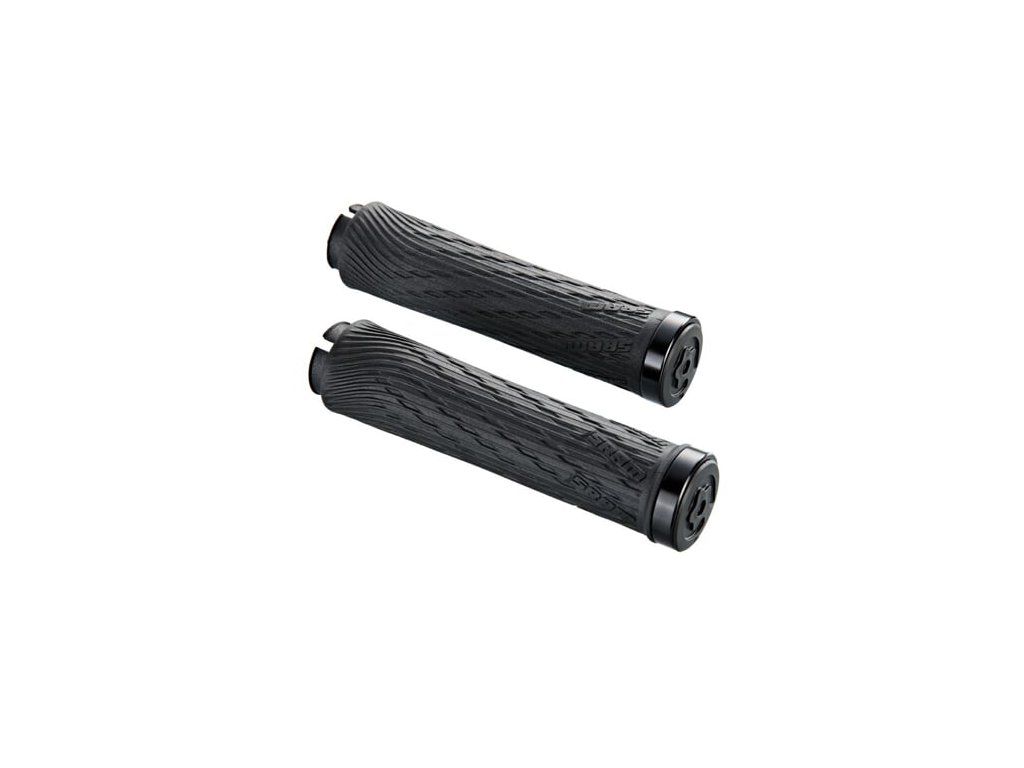 Verriegelungsgriffe für Grip Shift, volle Länge 122 mm, mit schwarzen Hülsen und Lenkerendkappen.