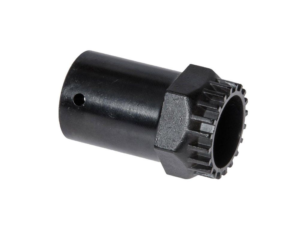 Er ist dafür ausgelegt, verkapselte Mittelachsen auf einem quadratischen oder Octalink zu montieren und abzubauen. Um mit dem Zieher zu arbeiten, wird eine 1/2" Ratsche oder ein 32-mm-Gabelschlüssel benötigt.