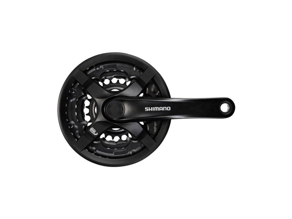 Typ: MTB, Gesamtgewicht des Gehäuses: 1035 g, Kurbellänge: 170 mm, 6/7/8 Gang, Anzahl der Zähne: 42/34/24 Zähne, quadratische Achse, 68/73 mm, schwarz, mit Abdeckung, Wandler-Material: Stahl (oben), Stahl (mitte), Stahl (unten)