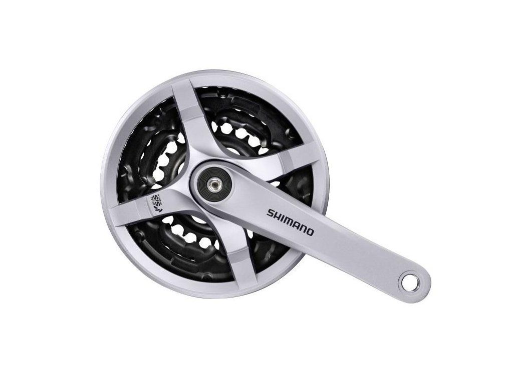 Typ: MTB, Gesamtgewicht des Gehäuses: 1035 g, Kurbellänge: 170 mm, 6/7/8 Gang, Anzahl der Zähne: 42/34/24 Zähne, Quadratachse, 68/73 mm, Silber, mit Abdeckung, Wandlermaterial: Stahl (oben), Stahl (mittler), Stahl (unten)