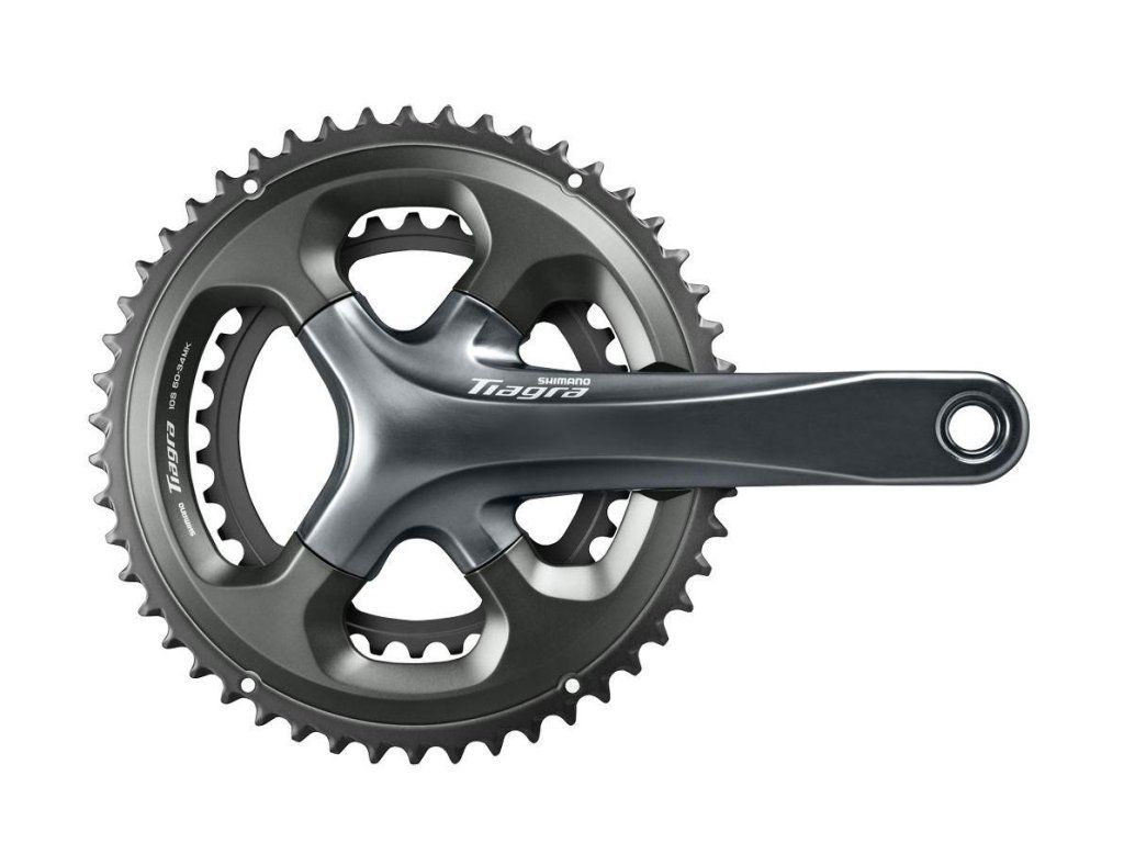TIAGRA FC4700 Center mit integrierter Achse (2-STÜCK) für 10-Gang-Zahnräder mit wählbarer Anzahl von Zähnen (Rider Tuned) an den Kettenblättern – 50/34 und 52/36. Das Design stammt aus höheren Road-Sets.